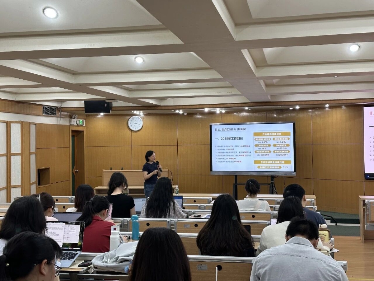 张书记首先解读了2025年全国两会精神,围绕政府工作报告,系统回顾“十四五”时期我国在经济发展、科技创新、产业建设、民生保障、生态文明建设等方面的发展成就,明确“十五五”时期的主要目标与重大任务。期间,她带领同学们重点学习了2026年重点工作任务,清晰了解国家发展导向。