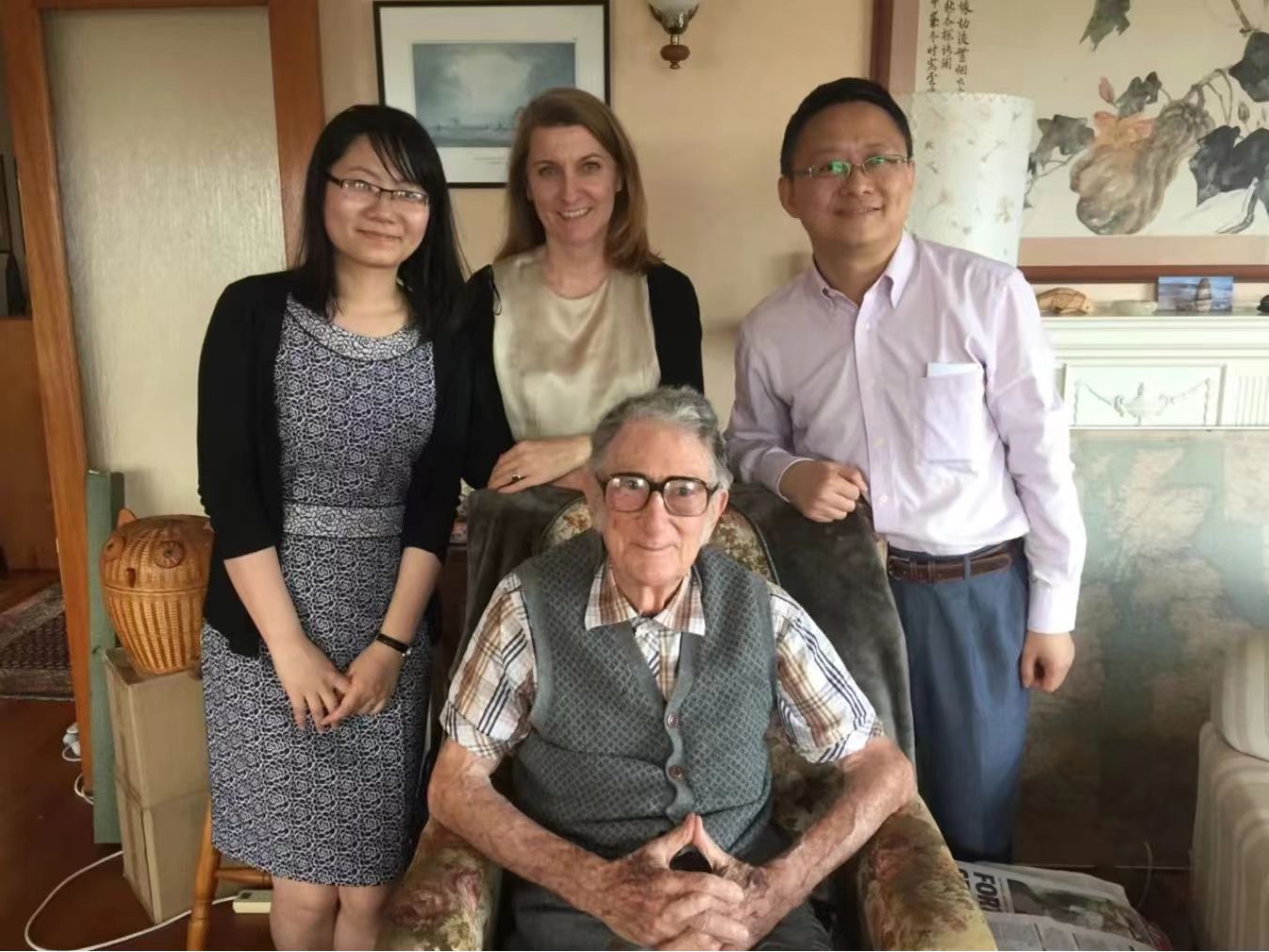 哈桑教授去世后,韩礼德先生身体也大不如前。因抵抗力下降,他生命最后几年一直受带状疱疹的困扰。2016 年初,我到 Macquarie 大学参加纪念哈桑教授的研讨会期间,曾和同事 Wendy Bowcher 教授到他家里拜访,先生身体已经比较虚弱,行动缓慢,但精神尚好。