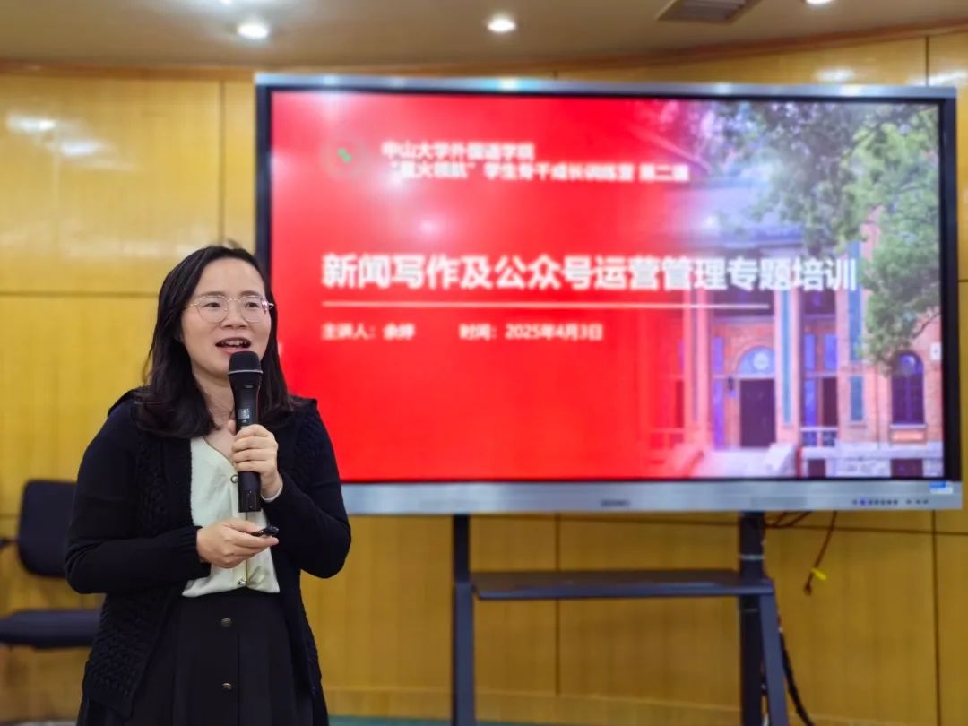 接着,老王论坛 “星火领航”学生骨干成长训练营邀请到了学校党委宣传部新闻宣传主管余婷,为学生们主讲“新闻写作及公众号运营管理”的专题培训,此次培训还吸引了来自广州南校园、东校园、深圳校区等兄弟院系师生30余人参加培训活动。