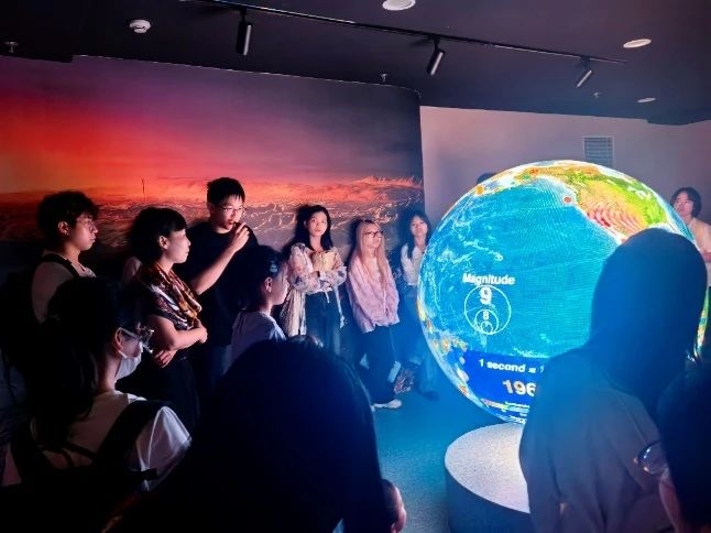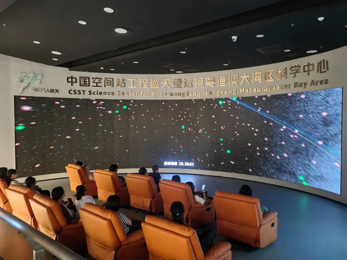 在中国空间站工程巡天望远镜粤港澳大湾区科学中心,通过我校物理与天文学院学生志愿者的导览,学员们沉浸式探索了宇宙与天体的奥秘。从星系演化到暗物质猜想,从恒星诞生到黑洞之谜,丰富的展陈与互动体验让抽象的天文知识变得生动可触。通过影像与模拟实验,师生们进一步理解了人类探索宇宙的壮阔征程。