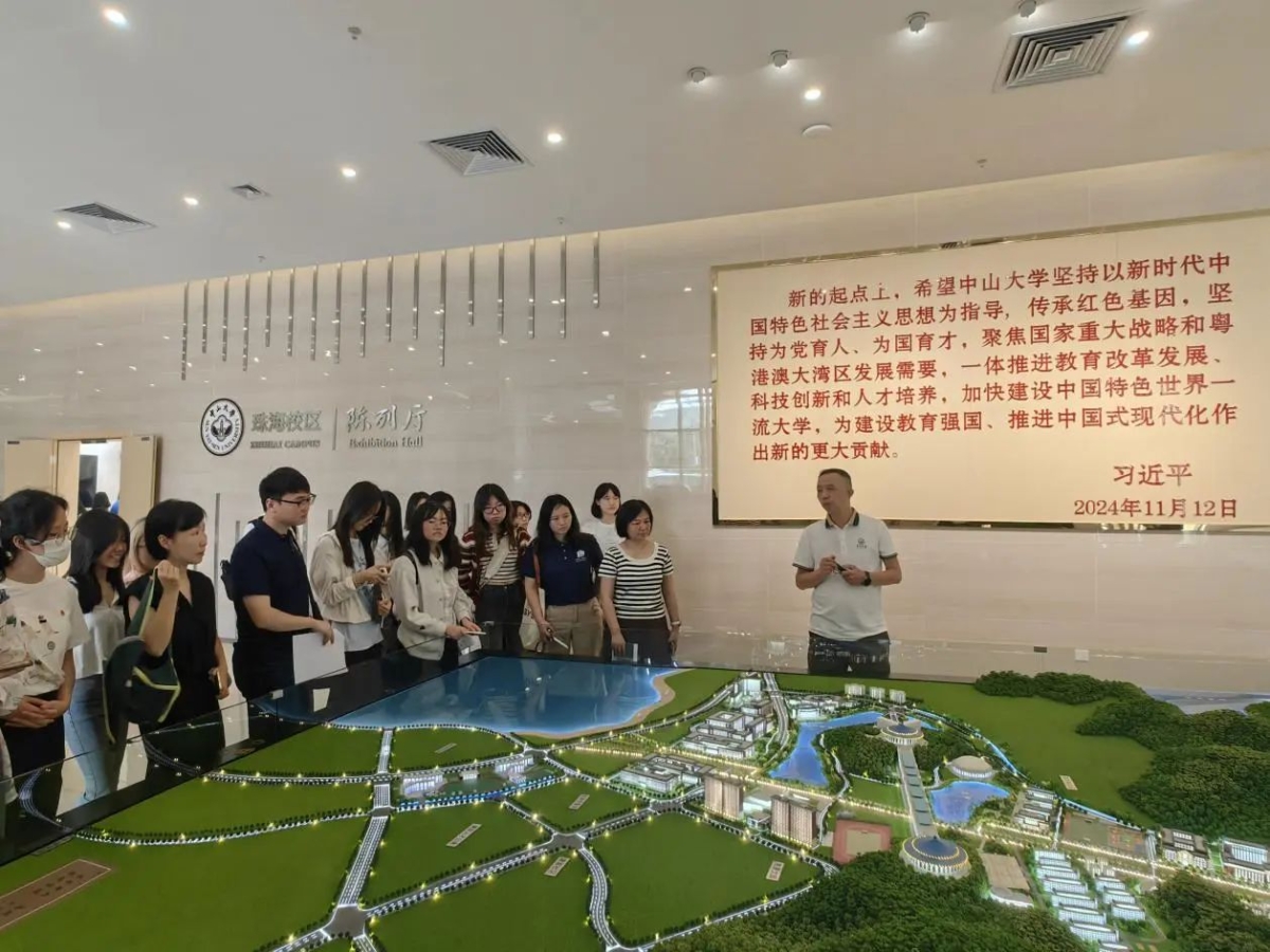 在珠海校区陈列厅,校区管委会郑子飞老师以一位亲历者身份讲述了珠海校区建设发展历程,从建设初期筚路蓝缕的艰辛到如今学科布局与国际化成果成效显著,娓娓道来、如数家珍。展厅以图文资料、沙盘模型与历史实物,全面回顾了珠海校区从蓝图到现实的跨越式发展历程。师生们深切体会到校区“扎根湾区、服务国家”的使命担当,校区建设过程中的“拓荒牛”精神也将激励着学员们传承发展,在学习工作中艰苦奋斗、开拓进取、砥砺前行。