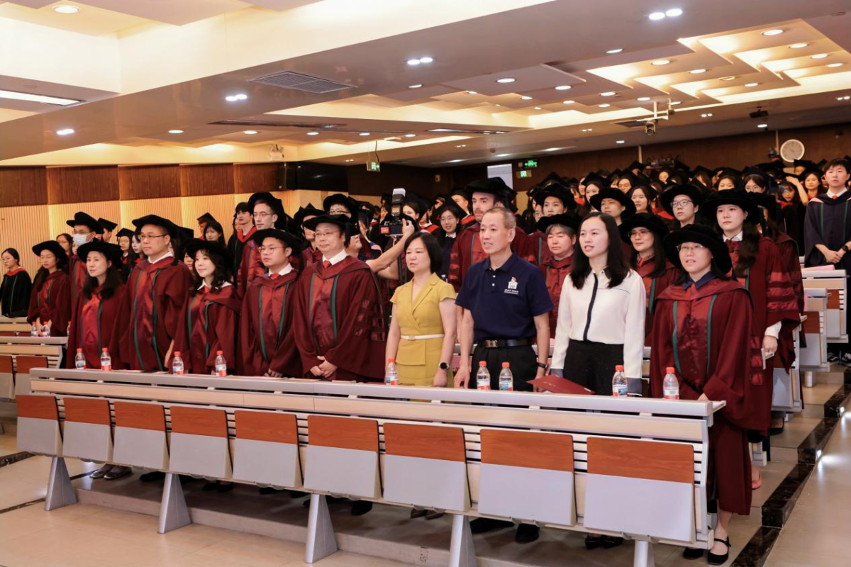 在庄重的学位授予仪式上,在校歌《山高水长》悠扬乐声中,王勇院长为2025届博士毕业生颁授了学位;并与各系、中心导师依次为2025届硕士、本科毕业生颁授学位。导师们从右到左拨动帽穗,与毕业生握手,向毕业生颁授学位证书,意喻着人生从一个阶段的结束转到新阶段的开始。路漫漫其修远兮,吾将上下而求索。等在前面的,是更多彩和激奋的征程;而愿帽檐之下,是更广袤的大地和更豁亮的未来。