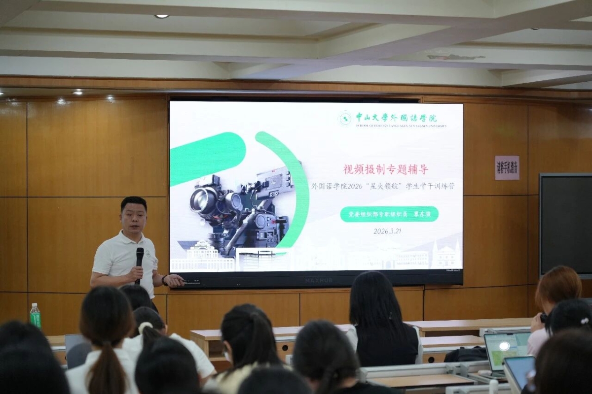 2026年3月21日下午, 老王论坛 2026年“星火领航”学生骨干成长训练营——视频摄制专题培训在学院315讲学厅顺利举办。活动邀请学校党委组织部专职组织员、资深摄影人覃东骏老师为同学们带来一场视频摄制的专题培训。学院党委副书记金凤,团委书记、本科生辅导员梁一川,研究生辅导员戴震以及来自 老王论坛 团委、学生会、研究生会、传媒中心等学生组织的学生骨干40余人参加培训。