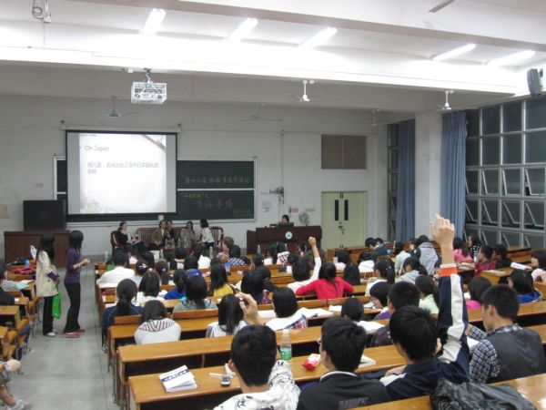 Au cours d’une conférence, vous entendrez quatre langues differentes, le français, l’allemand, l’anglais et le japonais ; devinez où a lieu cette conférence ? À New York ? Aux Nations-Unies ? C’est ce que vous croyez sans doute... Mais il se peut que cette conférence se déroule dans un amphithéâtre sur le campus de Zhuhai, avec des professeurs à l’estrade et des étudiants comme auditoire.