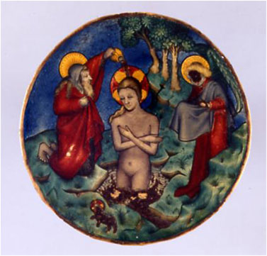 Le baptême du Christ. Email translucide sur or de basse-taille. Paris, vers 1420-1430.