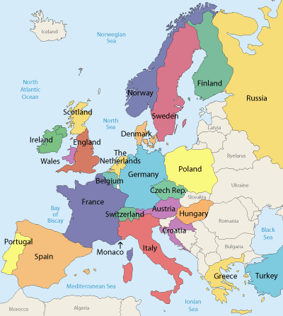 La France métropolitaine est située à l’une des extrémités occidentales de l’Europe. Elle est bordée par la mer du Nord au nord, la Manche au nord-ouest, l’océan Atlantique à l’ouest et la mer Méditerranée au sud-est. Elle est frontalière de la Belgique et du Luxembourg au nord-est, de l’Allemagne et de la Suisse à l’est, de l’Italie et de Monaco au sud-est, de l’Espagne et d’Andorre au sud-ouest. Si les frontières du sud du pays correspondent à des massifs montagneux, les frontières du nord-est ne correspondent à aucune limite géographique ni linguistique. La France métropolitaine comprend plusieurs îles, notamment la Corse.