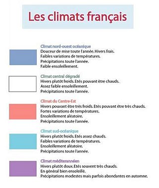 - au sud de celui-ci, le domaine aquitain reprend les caractéristiques du domaine breton, mais avec des températures plus élevées ;